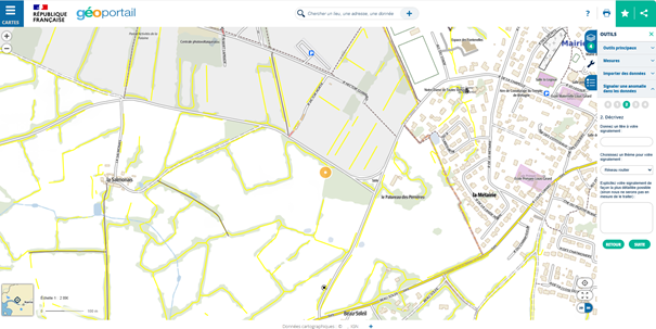 Sur le web : Visualisation cartographique - Géoportail le Géoportail vous permet également de signaler une correction à apporter. (Accès par le menu de droite, petite icône "clé à molette")